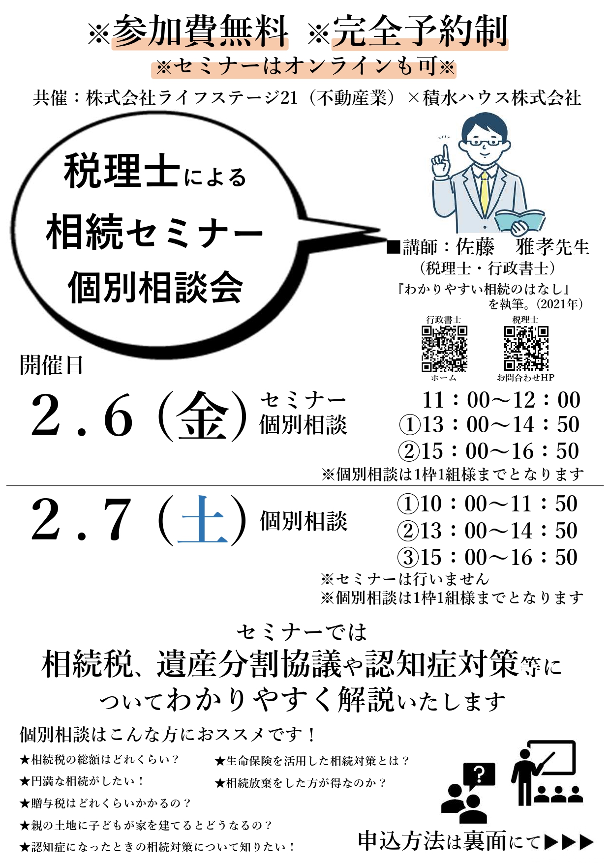 セミナーと個別相談両方のご予約をお勧めしております。